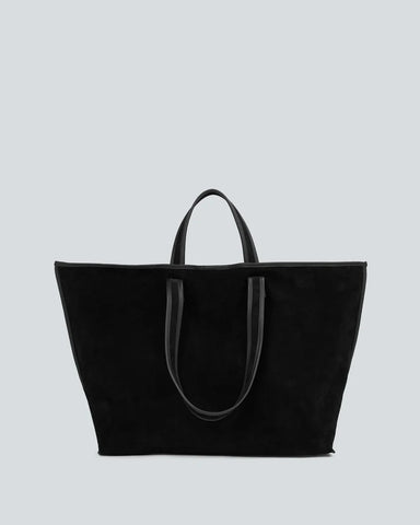 Sort ruskind i fokus KASSL Editions tote bag fremstår med et minimalistisk udtryk i sort ruskind. De to lange håndtag og den rummelige åbning gør t...