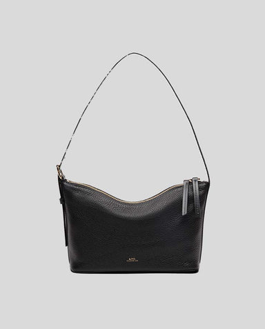 Sofistikeret design i læder A. P.C Black Vera Shoulder Bag har et minimalistisk udtryk med en buet top og en stor skulderrem. Den guldfarvede metal...