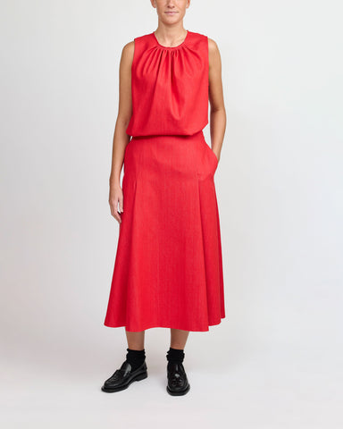 Rika Studio Chloe Skirt Rose Red Rika Studio Chloe Skirt Rose Red er en midi-nederdel fremstillet i Italien. Nederdelen kombinerer et moderne desig...
