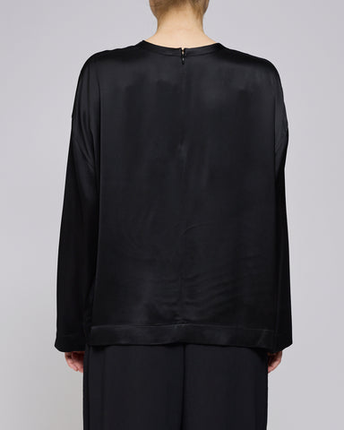 Sort Boxy Satin Top Toteme Black Boxy Satin Top er fremstillet af 100% viskose, et materiale der sikrer en blød og åndbar kvalitet. Toppen har en b...