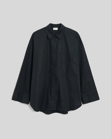 Moderne oversized design By Malene Birger Black Derris Shirt præsenterer en afslappet, oversized silhuet i sort. Den rummelige pasform skaber et mo...