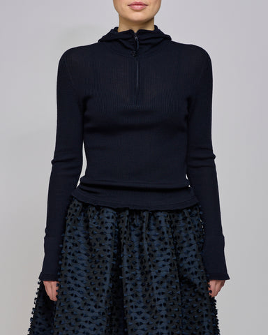 Merino-strik med detaljer Cecilie Bahnsens Navy Belma Hoodie er designet som en sommer-merino-strik, der kombinerer struktur med feminine ruffles. ...
