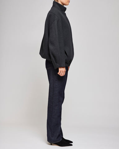 Skulpturel silhuet i mørkegrå Denne Dries Van Noten jakke præsenterer et markant højhalset design, der definerer den moderne silhuet. De oversized ...
