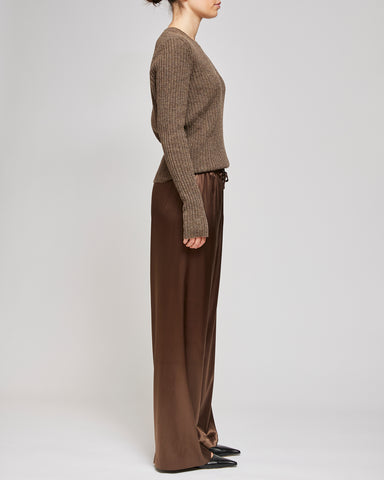 Brune Silke Bukser Dries Van Noten præsenterer disse lange Puvis-bukser i brun, hvor den skinnende overflade skaber et elegant udtryk. Det brede, l...