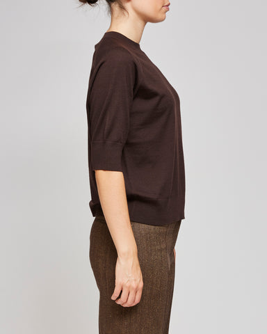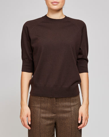 Sofistikeret strik i naturmateriale Dries Van Noten præsenterer en mørkebrun Tuan-sweater med et minimalistisk udtryk. Den rene designlinje med run...