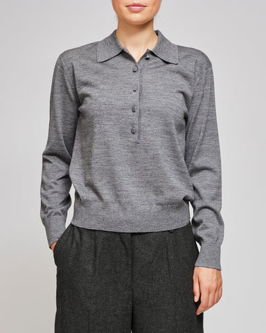 Sofistikeret strik fra Dries Van Noten Denne grå Tuno-polo fra Dries Van Noten forener klassisk strikdesign med moderne udtryk. Den langærmede polo...