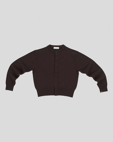 Extreme Cashmere Dark Brown Luce Denne cropped cardigan i mørkebrun er fremstillet af 88 % cashmere, 10 % nylon og 2 % elastan. Denne materialesamm...