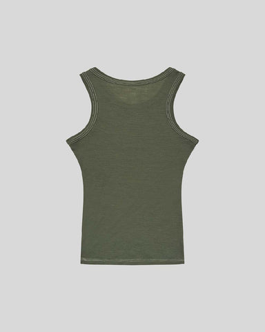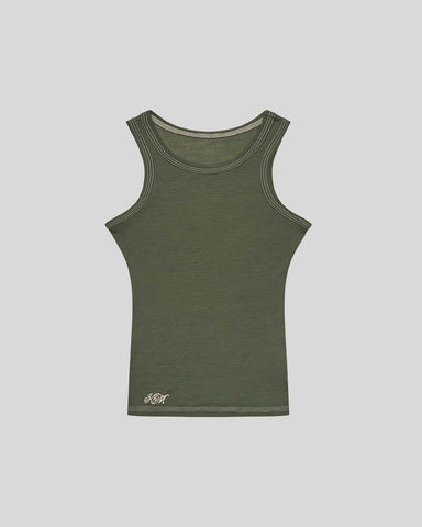 Oliven Grøn Milo Top Kernemilk Milo Top kombinerer et rent udtryk med høj kvalitet. Den olivengrønne top har en rund halsudskæring med kontrasteren...