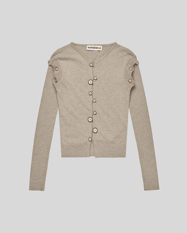 Caroline CardiganKernemilk Caroline Cardigan kombinerer cashmere og uld i en flot strikket cardigan. Den beige nuance og de gennemtænkte detaljer s...