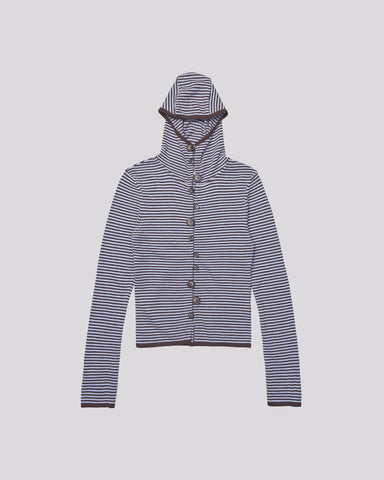 Striber i lyseblå og mørkebrunKernemilk Light Blue/Dark Brown Looney Cardigan er fremstillet med 5% cashmere og 25% uld, hvilket sikrer en behageli...
