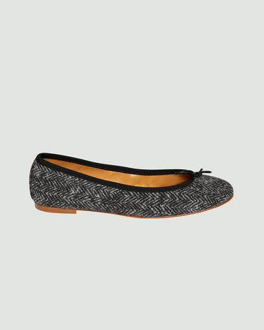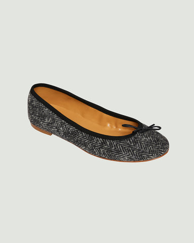 Unikt, men klassisk designDenne håndlavede ballerina fra Lolo the Ballerina i det karakteristiske fiskebensmønster i grå og sorte nuancer skaber en...