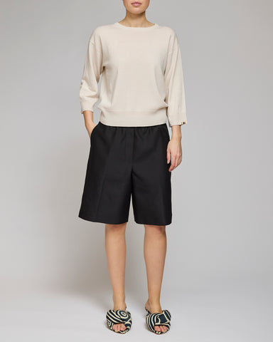 Sort uld og silke Dries Van Noten Black Pomy Short Pants er fremstillet med fokus på kvalitetshåndværk og materialevalg. Stoffets sammensætning af ...