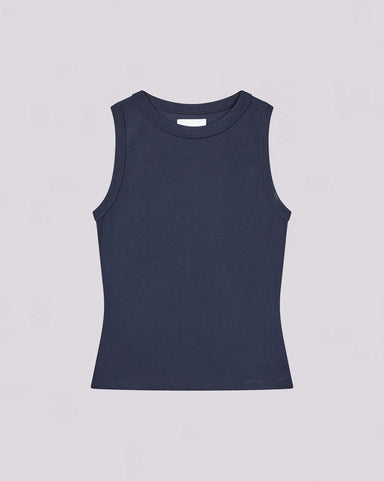 Den klassiske Carrie Tank Teira 1996 Navy Carrie Tank er skabt med fokus på kvalitet og pasform. Den strækbare bomuld giver en behagelig pasform, d...