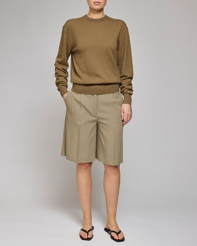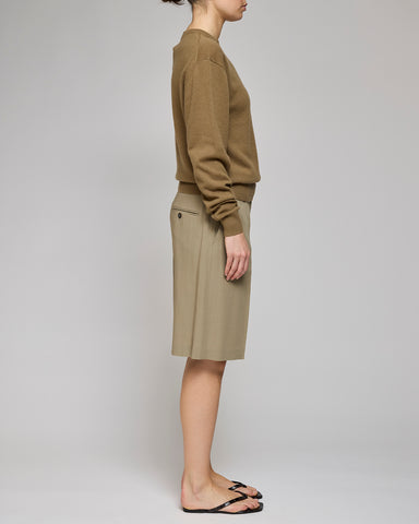 Bred og flydende silhuet Toteme's taupefarvede shorts er fremstillet i en blanding af 60 % viskose og 40 % RWS-uld, hvilket giver stoffet en blød o...