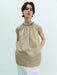 When you need a top that works for different venues, this design offers solutions. The khaki color is suitable for various settings, ranging from casual to more formal. The boxy fit provides comfort for extended wear, whether you're standing at a gallery or seated for dinner.
