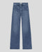 Frame Iberia Le Slim Palazzo Modernist Pock er fremstillet med fokus på kvalitet og bæredygtighed. Materialet indeholder 21% præ-forbruger genanvendt bomuld og 17% postforbruger-genanvendt polyester, kombineret med 49% bomuld, 11% lyocell og 2% elastan. Den tætsiddende hofte med subtil vidde i benene skaber en moderne silhuet, hvor benene rammer gulvet. Det høje talje-design fremhæver en raffineret pasform, mens de synlige frontlommer og bæltestropper tilføjer funktionelle detaljer til den klassiske blå vask.