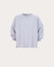 De droppede skuldre og den rå kant skaber en nutidig silhuet. Materialeblandingen giver sweatshirten en blød fornemmelse mod huden, mens den bevarer sin form gennem dagen. Den blå nuance fungerer som et diskret statement.