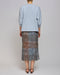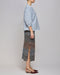 Det ternede mønster skaber et visuelt interessant udtryk, der fremhæves af de nøje udvalgte farver. Kombinationen af blå, brun og hvid gør nederdelen velegnet til forskellige stylingmuligheder.