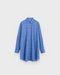 Toteme's langærmede skjorte er udført i cobaltblå voile med hvid monogramsyning, der danner geometriske mønstre og bogstaver i varierende placeringer. Materialet er ekstra let, hvilket gør skjorten luftig i varme klimaer. Den er fremstillet i en blanding af 50 % bomuld og 50 % lyocell, der sikrer en blød haptik mod huden. Den klassiske spidskrave og den forlængede længde giver skjorten et moderne udtryk.
