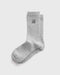 Toteme Light Grey Monogram Socks er fremstillet i en lysegrå nuance med et broderet monogram placeret nær toppen. Sokkerne består af 65% økologisk bomuld og 32% genanvendt polyamid, hvilket sikrer både komfort og bæredygtighed. Den strikkede struktur giver en naturlig fleksibilitet, mens det diskrete monogram tilføjer en karakteristisk detalje. Sokkerne er designet til den stilbevidste garderobe, hvor kvalitet og gennemtænkt håndværk står i centrum.