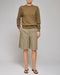 Toteme's taupefarvede shorts er fremstillet i en blanding af 60 % viskose og 40 % RWS-uld, hvilket giver stoffet en blød og åndbar kvalitet. Den knælange længde, kombineret med den løstsiddende pasform, sikrer bevægelsesfrihed og komfort. Shortsene har bæltestropper ved taljen og sidelommer, mens det plisserede frontdesign tilføjer struktur til den afslappede silhuet. Materialesammensætningen gør dem velegnede til både hverdagsbrug og mere afslappede sociale sammenhænge.